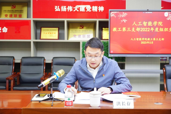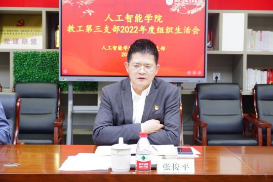 为深入学习贯彻习近平新时代中国特色社会主义思想及党的二十大重大决策部署,提升基层党组织建设水平。3月27日下午,人工智能学院教工第三支部在414党员之家召开2022年度组织生活会,并开展民主评议。学校党委委员、副校长张俊平出席会议,支部全体委员参加组织生活会,会议由人工智能学院党总支副书记、教工第三支部书记洪长存主持。