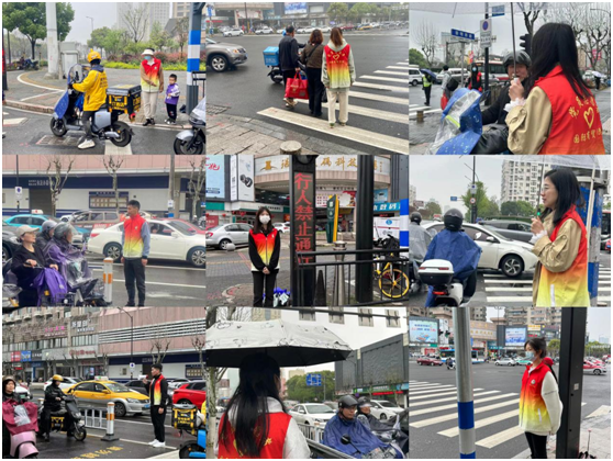 4月5日—7日,国际商贸学院党总支共有6名教师党员、50余名学生入党积极分子参与志愿活动。自早晨7时开始,持续到傍晚6时。4月6日,大雨磅礴,气温骤降。师生志愿者们忙碌的身影在早晨7时就出现在数码科技广场的四岔路口。志愿者们有序分工,协助交警,针对交通路口非机动车和行人闯红灯、无序通行等不文明行为进行监督劝导;他们学习交通指示手势,对车道拥挤堵塞进行正确引导疏通。除此之外,师生党员们还帮助老人、儿童等特殊人员过马路,为路人提供指路咨询。