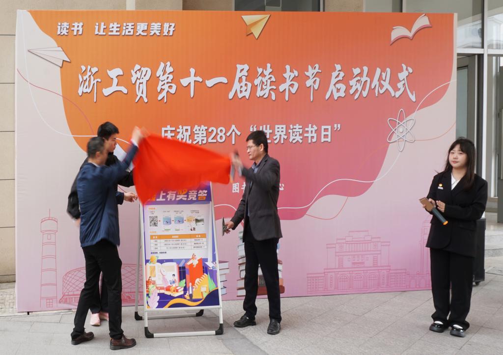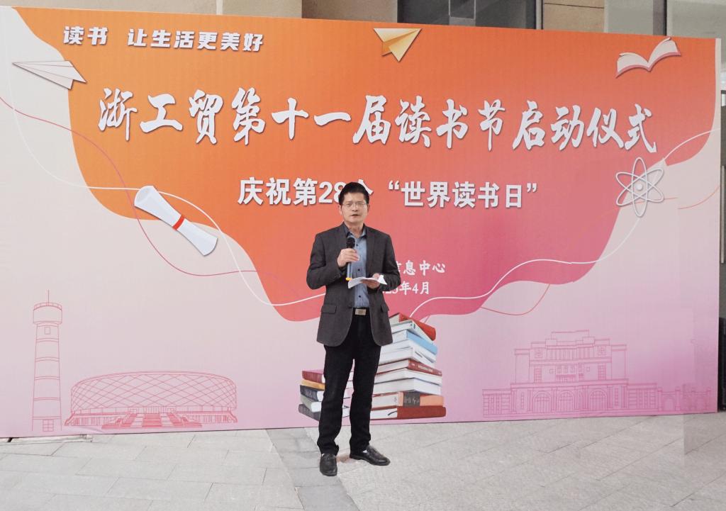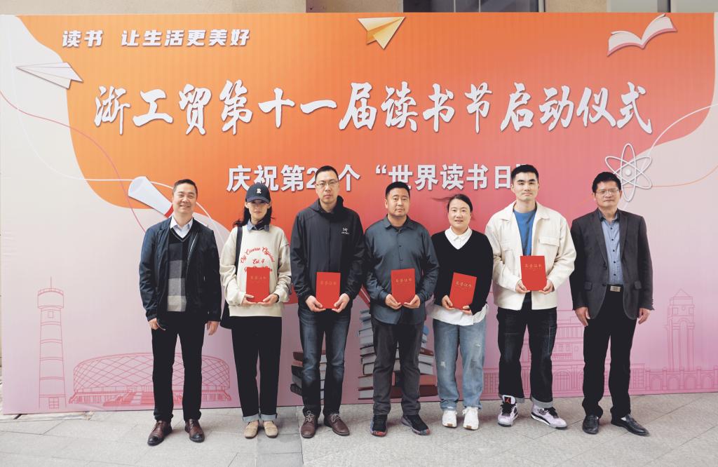 人间四月天,最美读书时。2023年4月14日下午,我校图书信息中心在瓯江口校区资讯楼广场举行“第十一届浙工贸读书节”启动会暨2022年度优秀读者表彰会。图书馆全体人员、2022年度瓯江口校区优秀读者及校学生社团管理部同学参加了此次活动。张俊平副校长也应邀出席启动仪式。