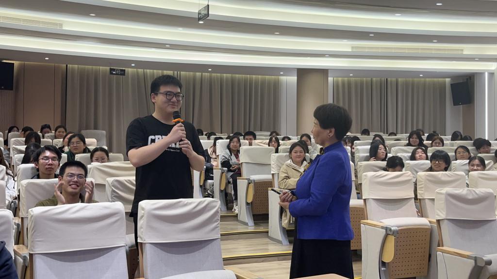 张教授以“笑脸”导入,引出了压力主题,张教授从什么是压力、压力源、压力大的表现等多个角度向大家进行解释介绍,并从生理方面、情绪方面、认知方面以及行为方面进行分析,让同学们对困扰自己的压力有了一定的认识。而后张教授通过例举身边的事例教会大家接纳自己、感恩他人,从而缓解自身的压力。在讲座的最后张教授强调幸福的意义就是快乐,并向大家介绍了提升自身幸福的六大方法。教授通过对自我察觉、满足需求、责任感、意义感、愉快感以及成就感六个方面的介绍,让同学们学会提升自身幸福力,让幸福走进心灵。