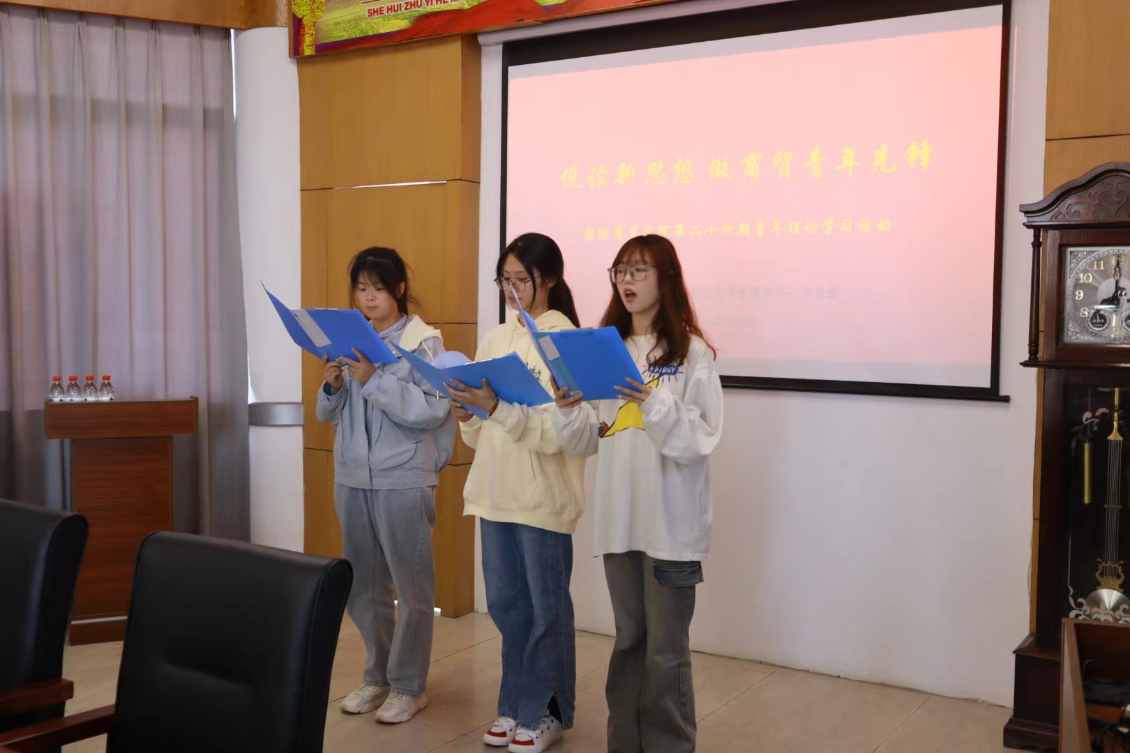 为深入学习贯彻习近平新时代中国特色社会主义思想和党的二十大精神,把学习贯彻习近平新时代中国特色社会主义思想主题教育传递到广大青年学子,4月26日,在五四青年节前夕,国际商贸学院举办迎五四“悦读新思想 做商贸先锋”第二十四期青年学子理论学习活动,40余名入党积极分子、申请入党学生参与,国际商贸学院组织员周妍妍老师参加。