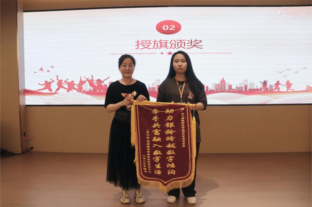 接着娄雪娟老师为浙工贸银龄微课堂师生志愿服务团赠送锦旗,感谢服务团的支持与付出。并为21级、22级优秀组织委员颁发奖状,并由优秀组织委员代表傅可萱发言。志愿活动的展开离不开组织委员们的积极付出与努力,颁奖不仅是对他们的肯定,更是对志愿精神永流传的赞扬。