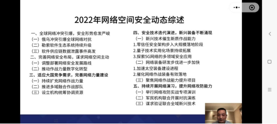 本次讲座内容包括大学生网络安全案例分析及常见安全风险、我国网络安全政策法规简介、大学生信息安全意识与基本防范技巧等。讲座结合具体案例,进行深入地分析,让同学们对网络安全有了更深层次的理解。