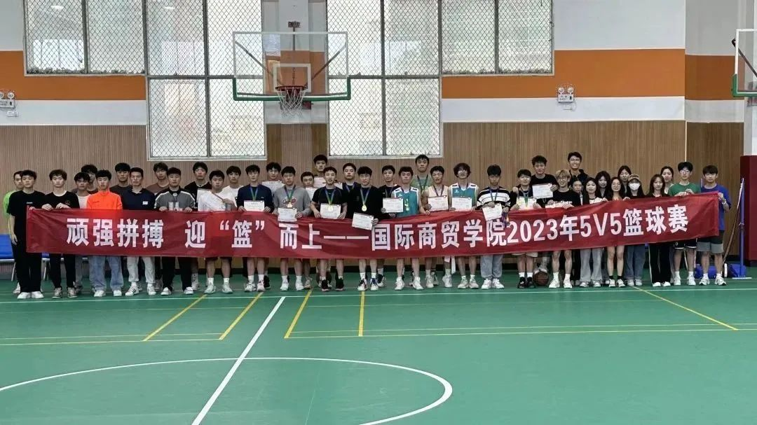 当哨声响起,双方队员如弦上的箭,为这场精彩的比赛展开激烈的竞争,赛场上,我们看到了队员间默契的配合,拼尽全力,倾洒汗水!比赛分淘汰赛、小组赛。情绪高涨的观众为支持的篮球队队员呐喊助威;恪尽职守的裁判员为每一场比赛的公正保驾护航。风止球起不负热爱,一传一跃飒爽英姿,四月用热血的篮球刻下印记,未来用如火的青春继续书写。此次国际商贸学院5v5篮球赛的举办圆满成功,颁奖仪式在欢呼声中拉开帷幕,最终21级国际经济与贸易专业荣获春季5v5篮球赛的冠军,22级3+2物流以及22级商英+法语荣获亚军和季军。赛场的激烈对抗在场下却是握手和拥抱,充分展现出我们“友谊第一,比赛第二”的宗旨。