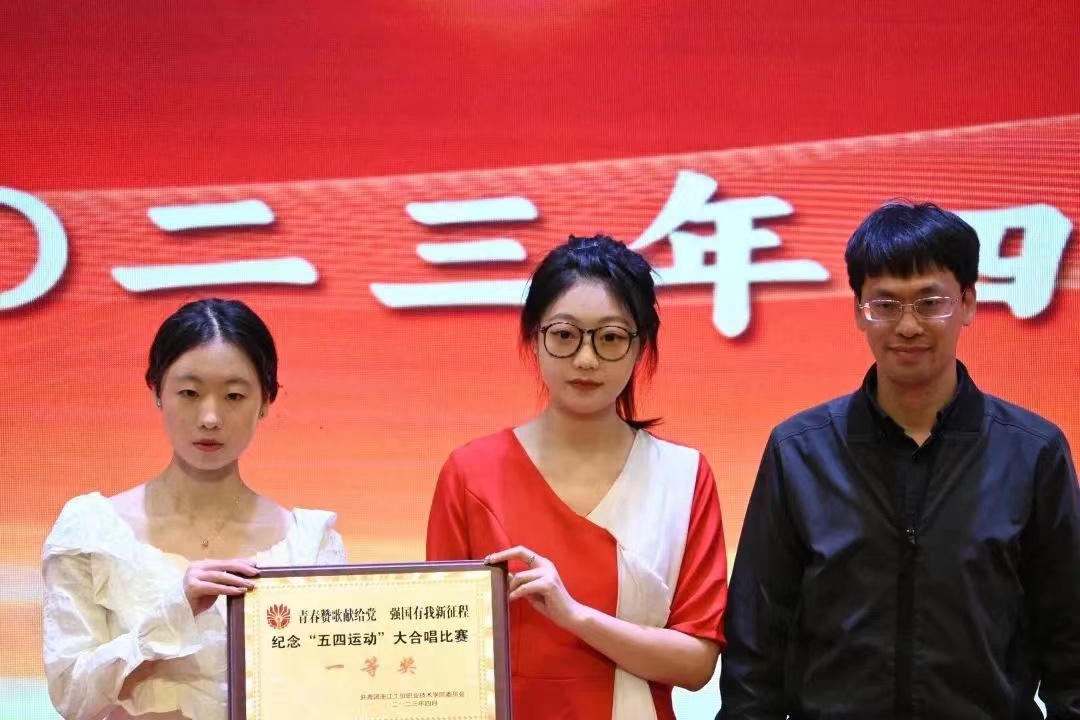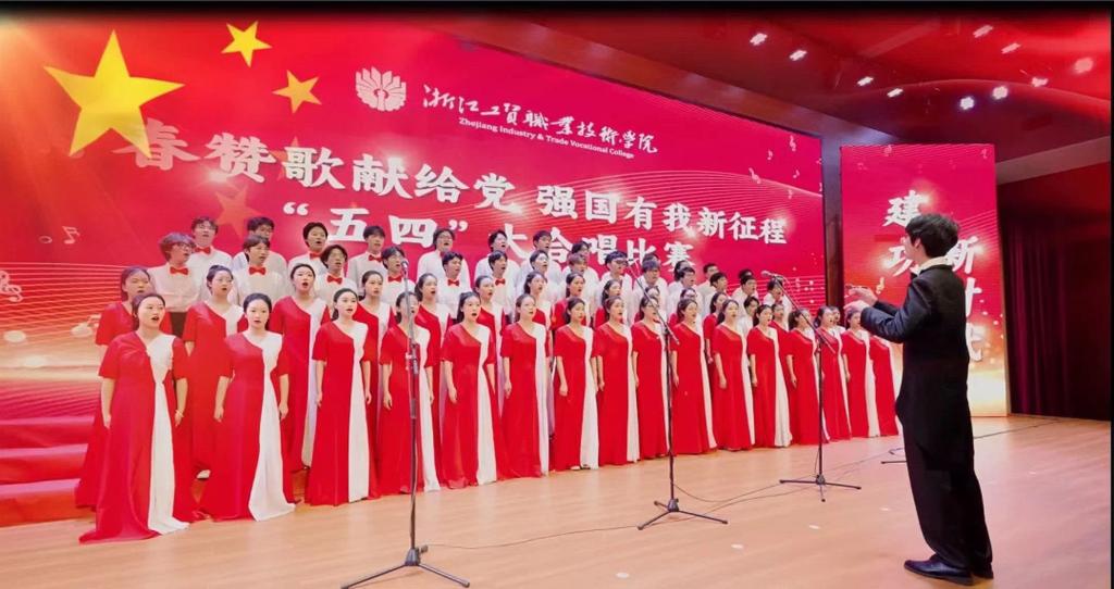 国际商贸学院在“青春赞歌献给党,强国有我新征程”纪念“五四”运动大合唱比赛中荣获一等奖,周英杰同学荣获“最佳指挥奖”