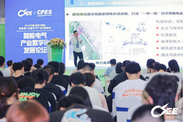 2023年5月13日下午2点举行2023中国(温州)国际新能源大会暨电气产业创新峰会——智能电气产业数字化发展论坛。3点我校老师王坤副教授发表主旨演讲——新材料技术在电气产业中的创新应用。电气产业是温州5大传统支柱产业之一,产值超千亿。王坤从温州电气产业发展需求出发,阐述了伟德BETVlCTOR1946在人才培养上的优势。随后,王坤以超特高压低㧌耐候铝合金电力金具的关键技术研究及应用、高强耐候特高压输电铁塔构件关键技术及应用、电气产品小尺寸半轴激光淬火等三个典型案例,详细讲解了工贸学院与温州电气企业合作攻克的关键技术难题。