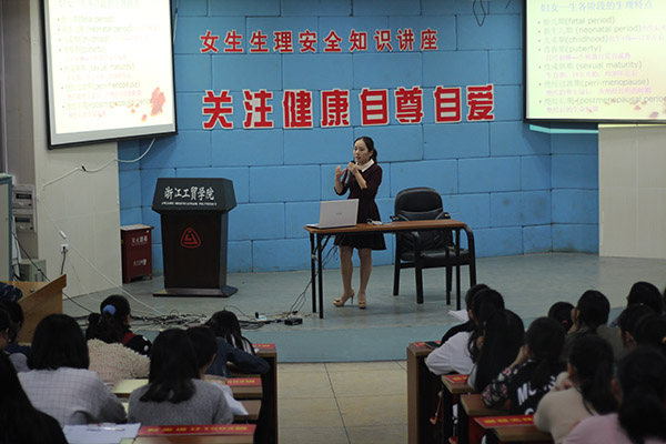 10月13日晚,轻工系协同信息传媒学院在阶梯教室举办以“关注健康,自尊自爱”为主题的女生生理安全知识讲座。