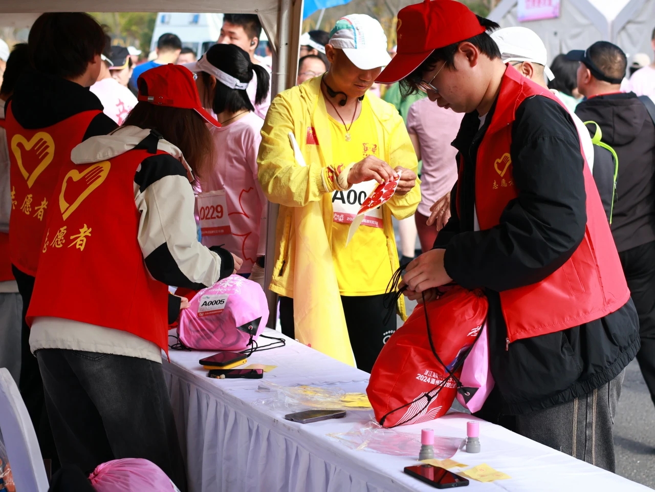 凌晨6点,天微微亮,志愿者们已集合完毕、整装待发,前往各服务点位熟悉各项工作,以饱满热情认真地投入到赛前准备工作:搬运物资、布置场地、工作指引、检录服务、寄存物资等。虽然工作流程复杂,但绿啄志愿者们的工作热情丝毫不受影响。
