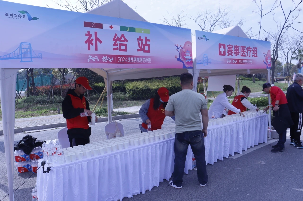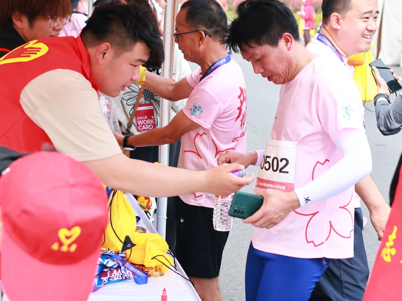 上午9:30,“樱花欢乐跑”正式鸣枪起跑。比赛过程中,绿啄志愿者们默默奉献,坚守岗位,为比赛提供周到的服务,采取前疏后密的纸杯摆放方式,并及时为经过的参赛运动员们提供补给。在人群高峰期,志愿者们也不忘为参赛运动员们呐喊助威,获得了运动员们热情的回应。