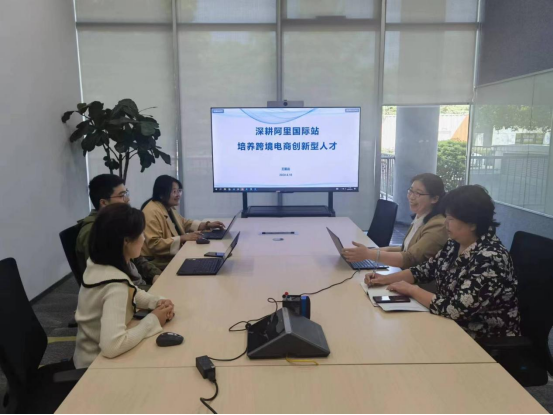 仪式前,校企双方围绕阿里外贸大模型项目进行座谈,就教材课程共建、实习实训资源共享、跨境电商人才共育等方面进行了深入探讨,并对目前外贸大模型项目的运行的成果和未来发展交换了意见。