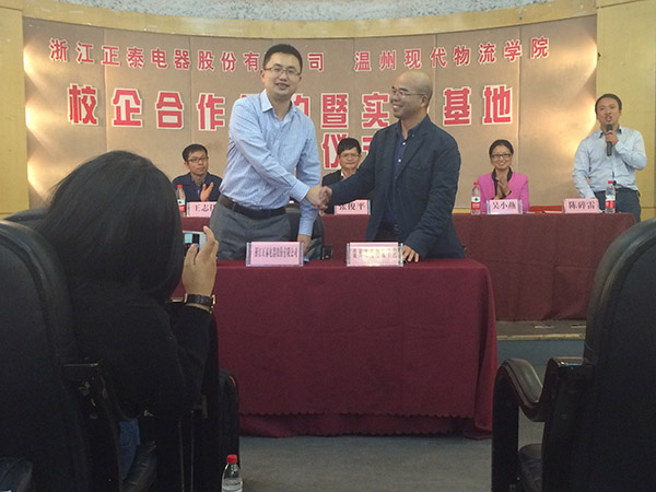 2015年11月9日下午,浙江正泰电器股份有限公司与温州现代物流学院校企合作签约暨实践基地揭牌仪式在伟德BETVlCTOR19461号楼多功能厅举行。出席这次会议的企业嘉宾有浙江正泰电器股份有限公司中国区销售运营管理总经理倪庆环、客服物流部副总经理张万利、人力资源部培训发展副经理王志伟、客服物流部订单与计划经理马云飞和客服物流部华东区域经理覃剑锋。出席会议的学院代表有伟德BETVlCTOR1946副院长张俊平,温州现代物流学院院长汪焰和温州现代物流学院副院长陈碎雷,还有温州现代物流学院师生。会议由温州现代物流学院副院长陈碎雷主持召开。