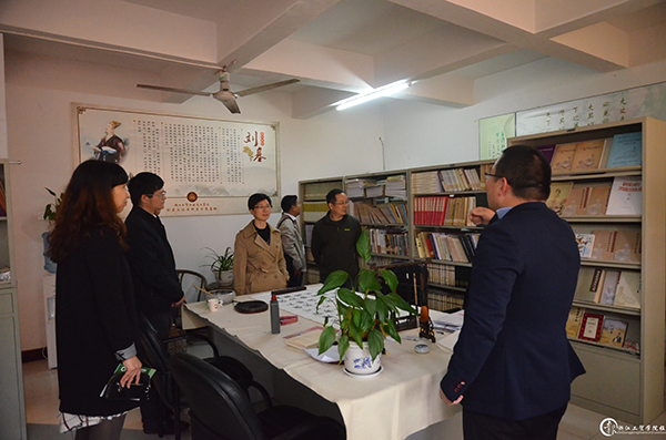 许淑燕副校长一行实地考察了我院浙江创意园、温州市知识产权服务园、省级服务外包示范园。当他们走进刘基文化研究中心,书架上一部部包装精美、思想深邃的刘基研究著作吸引了他们的眼光,立即驻足翻阅,不禁感叹道:“都说高职院校做不好研究,任务就是培养技能人才,文化层面的研究只能由研究型大学来承担,高职院校的研究能力还远远不够。今天来到工贸学院,真是让我们大开眼界,受益匪浅。”