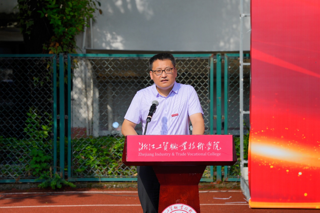 国际商贸学院院长陈碎雷发表了热情洋溢的致辞,陈院长对新生们的到来表示热烈欢迎,同时他也从学院简介、学院成就、学院特色、师资力量、社会服务以及学生成长几个方面向新生们介绍国际商贸学院,并向新生们提出三点期望:一、坚定理想信念,树立“技能报国”的决心;二、实践青春时光,树立“人生出彩”的信心;三、展现青春风采,树立“勇于拼搏”的恒心。