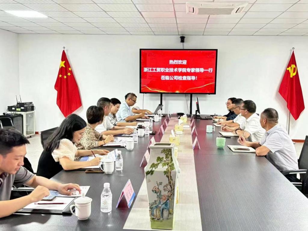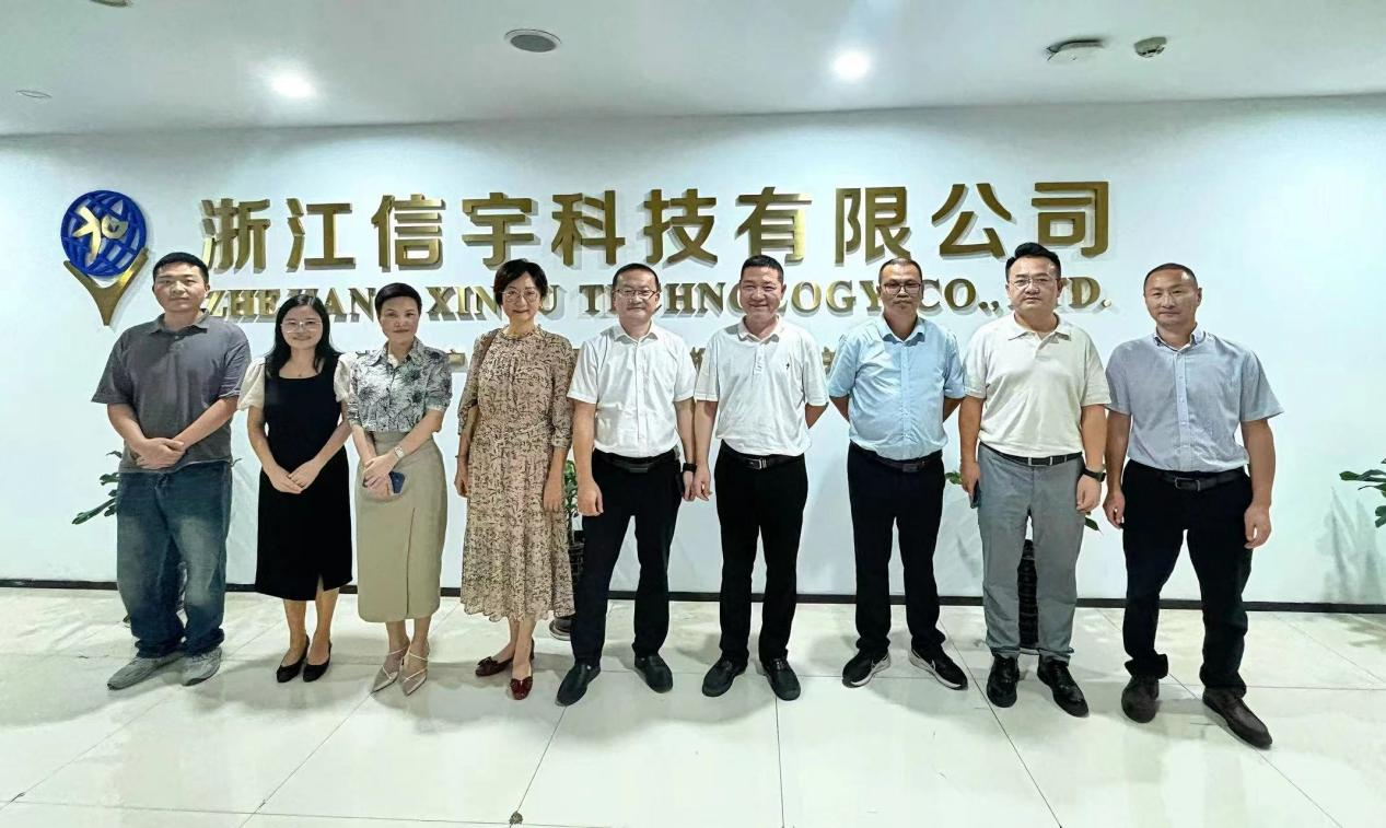 为了解行业的最新发展动态,进一步加强校企合作,高效促进校企之间互动和合作。9月26日下午,人工智能学院党总支书记冯士活、院长赵秀芝、学校工会副主席李丹、副院长钱月钟、专业主任潘益婷、浙南产业数据价值化研究中心负责人张磊以及实训中心干事项云淋共赴浙江信宇科技集团有限公司交流调研,并与公司董事长付建德、总经理付敬德、技术总监李刚及综合部主任周冬冬进行深入研讨。