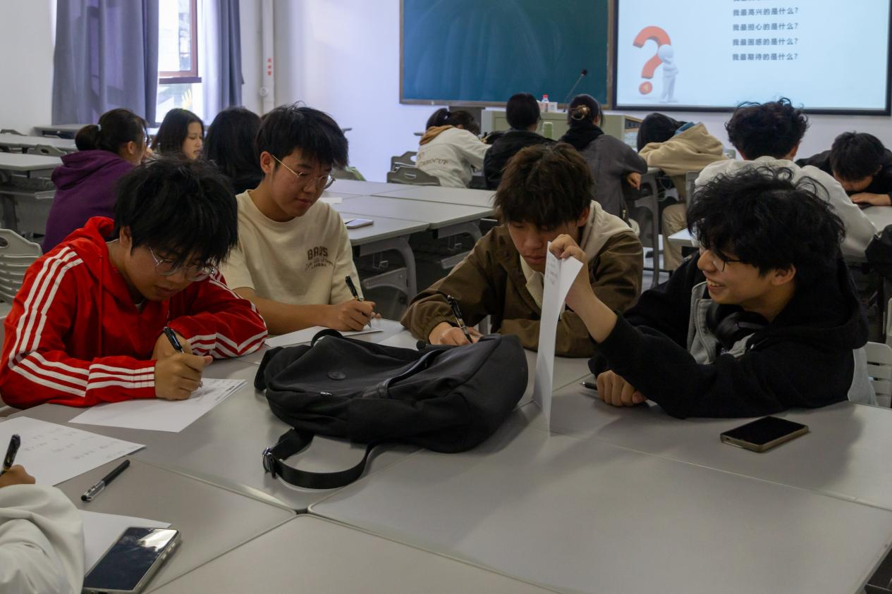 到了“大学生活的五个‘最’”环节,每位同学需要在白纸上填写自己大学生活中的五个“最”:最满意的、最高兴的、最担心的、最困惑的以及最期待的。填写完毕后,同学们在小组内分享个人的感悟与见解。此环节构建了一个促进成员间深度沟通的桥梁,使他们在相互的分享与倾听中增进了解,形成相互支持与鼓励的良好氛围,同时也为老师提供了一个洞悉新生真实状态的窗口,有助于精准捕捉新生的共性问题与需求。
