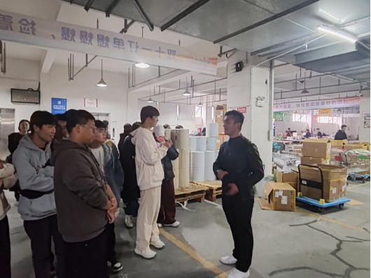 随后,参观队伍根据专业分为两支队伍,物流专业的学生们踏上了前往物流仓库的实地探访之旅。在资深物流人员的细致指导下,学生们对商品正确打包、精确贴标、高效分拣等物流核心业务环节有了更为深刻的理解和领悟。通过一系列实践操作中的讲解与互动交流,学生们成功地将物流管理的理论知识与实践操作紧密结合,实现了知识的深化与技能的提升。
