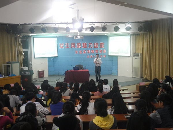 2015年11月16日晚,技师学院(温州校区)在一号教学楼阶梯教室开展女生健康系列教育专题讲座。本次讲座由技师学院教管中心主任段文林老师担任主讲。分院全体女生到场聆听。