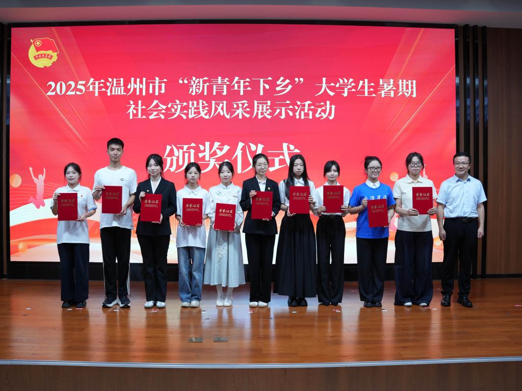 2025 年 9 月 28 日,温州市 “新青年下乡” 大学生暑期社会实践风采展示活动在浙江安防职业技术学院举行。伟德BETVlCTOR1946设计与数字艺术学院 “西部明眸” 眼视光志愿队,凭借扎实亮眼的实践成果与现场生动精彩的展示,成功斩获 “温州市十佳团队” 称号,为学校暑期社会实践工作再添一枚沉甸甸的荣誉。