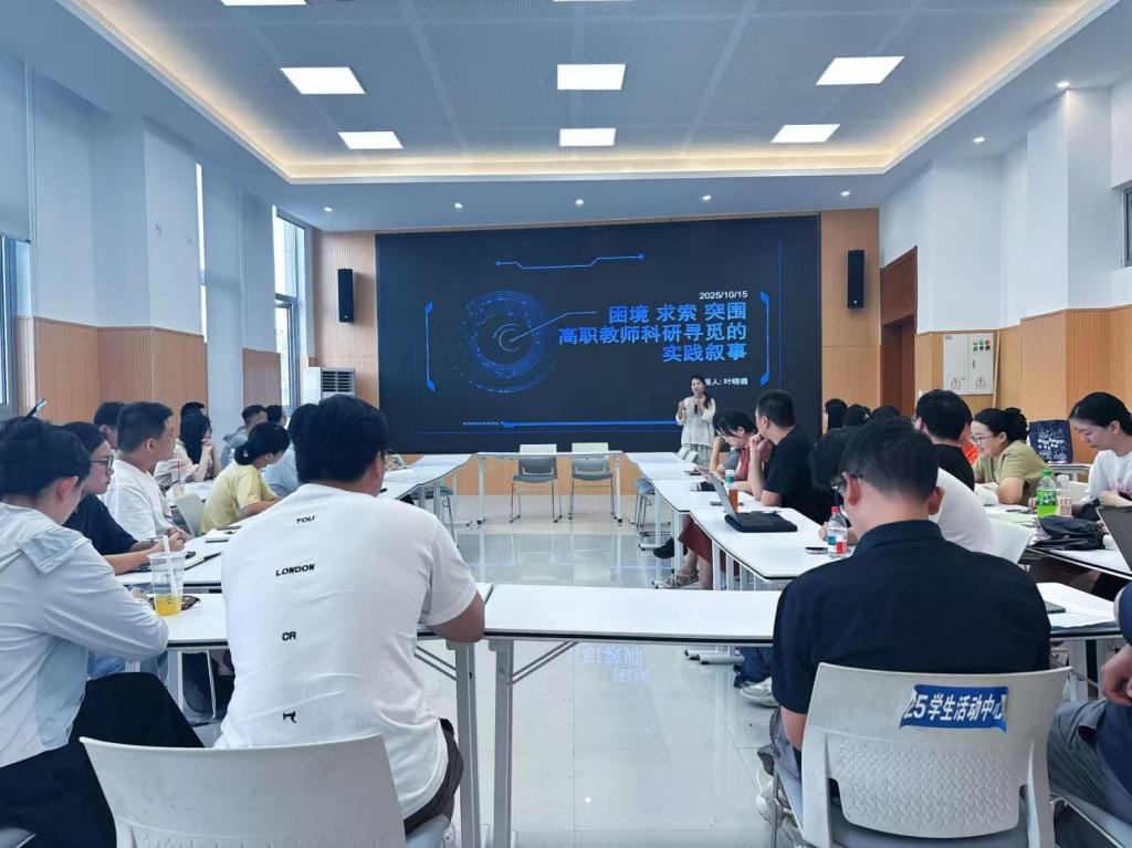 学工部心理健康教育中心叶晓璐老师以《困境·求索·突围:高职教师科研寻觅的实践叙事》为题开展专题分享。她结合自身近五年的科研经历,生动讲述了高校教师在科研道路上的求索过程,详细讲解一个扎实的研究如何形成,她认为科研就是从实践中提炼育人规律的过程,建议辅导员们从日常工作中挖掘研究选题,学会在“做中学、学中研”实现职业成长。分享内容兼具理论深度与实践指导性,引发在场辅导员的强烈共鸣。