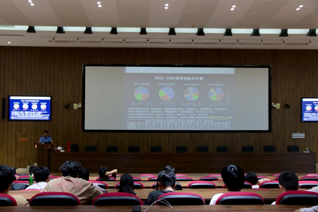 紧接着,一场内容充实的安全知识主题讲座在思辨楼阶梯会议室举行。校警负责老师结合高校中高发的真实案例,以案释法,向同学们重点剖析了防范电信网络诈骗、保障消防安全、注意交通安全以及防范盗窃等关键安全知识。讲座内容贴近校园生活,语言通俗易懂,案例发人深省。在互动环节,同学们踊跃提问,就自己关心的安全问题与校警进行了深入交流,现场气氛热烈。