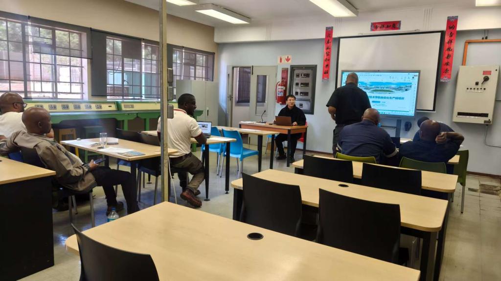 近日,我校光电制造学院教师金明磊在南非中国文化和国际教育培训中心为来自当地6所高校的教师群体开展了一场聚焦自动化教学领域的培训交流会。此次活动以技术为纽带,以交流为核心,不仅传递了自动化领域的前沿教学理念与实操经验,更搭建起我校与南非高校在职业技术教育领域深度对话的桥梁。