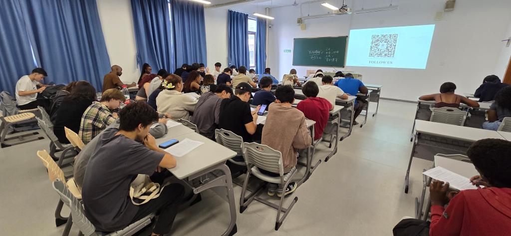 在主题班会结束后,紧张的结课考试随即开始。本次考试采用标准化试卷,题目由判断题和选择题构成,主要涵盖五大模块内容:学校规章制度(占比30%):包括考勤管理、宿舍安全、学习生活纪律等细则中国法律法规(占比25%):侧重出入境管理、法律法规等相关条款中国文化常识(占比20%):涉及传统文化、待人礼仪、行为规范等内容日常行为规范(占比15%):涵盖课堂礼仪、公共秩序等场景国际学生手册(占比10%):包含奖学金申请、医疗保障、学校基本情况等服务指南