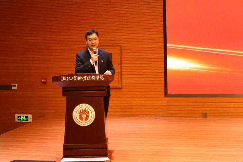 在随后的专业始业教育环节,郑秀老师为新生们做了全面而细致的专业介绍。她详细讲解了金融专业建设成果与人才培养体系、“岗课赛证融通”的教学模式、丰富的课程体系以及近几年在浙江省职业院校技能大赛、省大学生证券投资竞赛的突出成绩,为同学们描绘了清晰而充满希望的专业成长蓝图,助力其明确学习方向与职业规划。