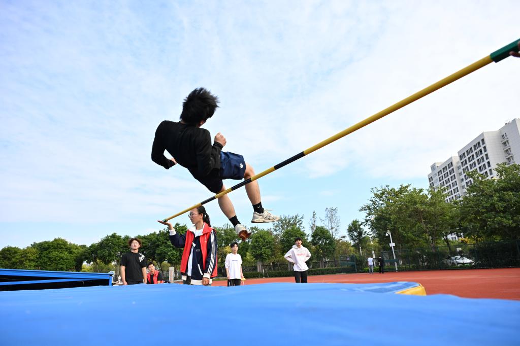 田赛场地同样精彩纷呈。跳远沙坑前,运动员屏息凝神,反复调整助跑节奏,力求每一步都精准到位;起跳、腾空、落地——动作一气呵成,宛如“光路校准”般严谨流畅。沙粒在空中飞溅的刹那,跃动的身影被阳光定格,青春的力量与美感在此刻完美交融,赢得阵阵喝彩。