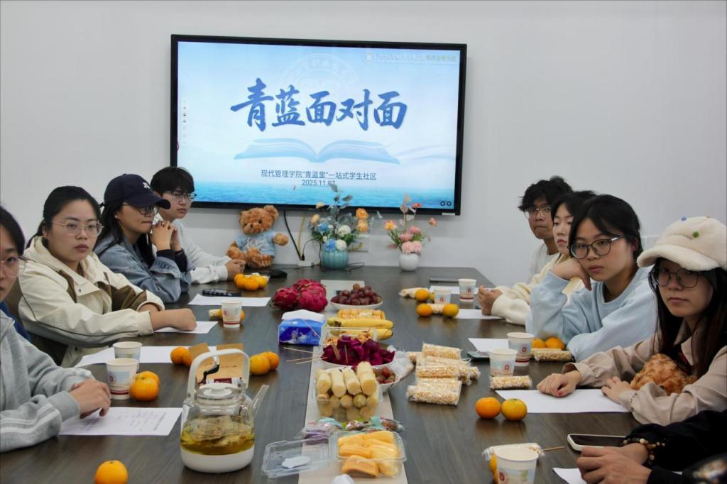为进一步凝聚共识,明晰方向,推动我院学生社区建设工作迈向新台阶,现代管理学院“青蓝里面对面”系列活动第三期于2025年11月7日在“青蓝里”一站式学生社区召开。学院“青蓝里”一站式学生社区主任季焕磊、团总支书记鲁金金以及学院团学组织和各协会代表共同参会。