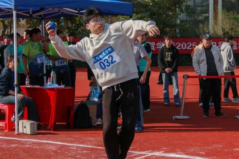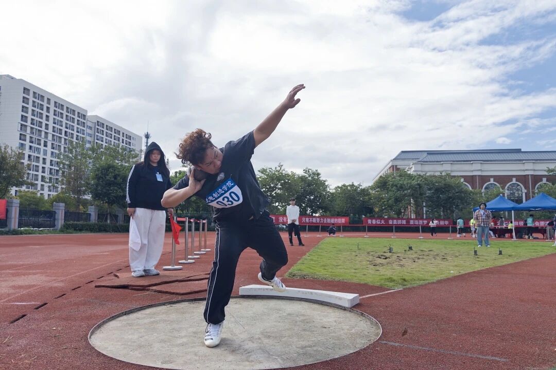 跳高垫前,身影助跑、腾跃而起,脊背轻擦横杆,落地瞬间掌声骤起; 跳远沙坑旁,加速踏板、凌空飞跃,沙粒随落点飞溅,丈量出青春的远度。铅球握于掌心,转体发力掷出,球体划破空气坠向远方;胶球紧握手中,摆臂投出弧线,落地声响伴欢呼漫场。各展所长的赛场,每一刻都闪耀拼搏光芒!