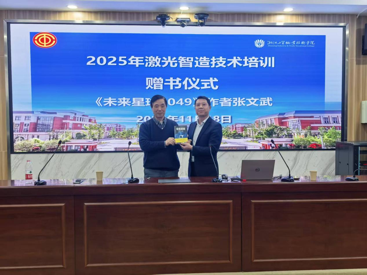 讲座结束后举行了赠书仪式,张文武副所长将自己创作的科幻小说《未来星球2049》赠予钟正根老师,并鼓励大家永葆好奇心,携手共创未来。