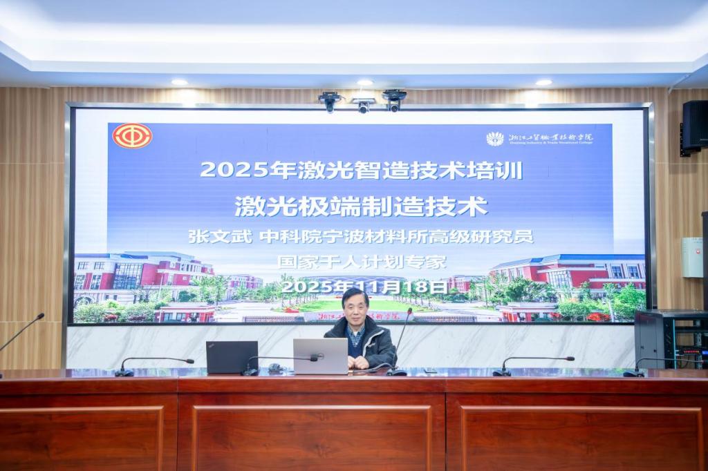 11月18日,由科研处主办,光电制造学院承办的激光智造技术培训科学家进校园活动在我校瓯江口校区行政楼104会议室举行。本次活动聚焦激光极端制造技术,邀请了中国科学院宁波材料技术与工程研究所副所长、国家千人张文武教授进行讲课。本次活动由智能光电制造专业主任钟正根老师主持,参训企业人员、专业教师及学生60余人参加本次活动。
