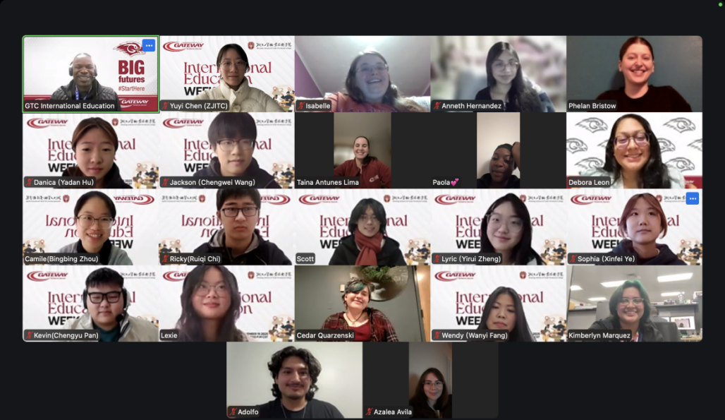 为深化中美职业教育合作、拓展学生国际视野,11月20日,我校10名学生代表在教师指导下,线上参与了合作院校——美国盖特威技术学院举办的国际生交流周活动。本次活动汇聚了来自中国、美国、厄瓜多尔、巴西等多个国家与地区的师生,围绕专业发展、校园文化、跨文化沟通与职业规划等议题展开深入交流,在多元对话中凝聚共识,彰显了中美合作办学背景下师生共同成长的积极成效。