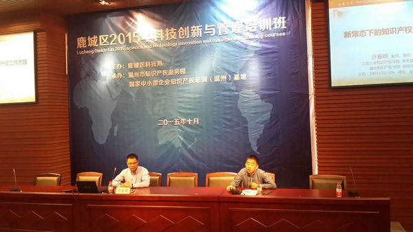 10月23日,由鹿城区科学技术协会主办、温州市知识产权服务园承办的2015年科技创新与管理培训班在我院召开,鹿城区一百多家企业的相关技术负责人、会计部门负责人、维权中心工作人员共计150余人次参加培训。