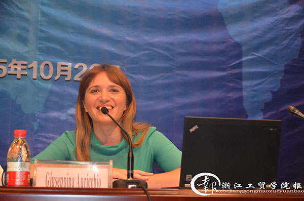 下午,朱塞佩娜·奥瑞琦(Giuseppian Auricchio)副院长在6号楼学术报告厅为我院师生作了一场主题为“国际时尚形势”的讲座。我院轻工系、文创学院、信息与传媒学院等相关专业的师生,及市服装协会、服装商会代表和企业设计师等约200人参加了本次活动。