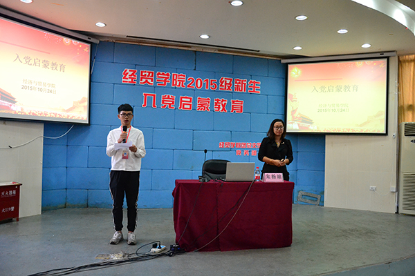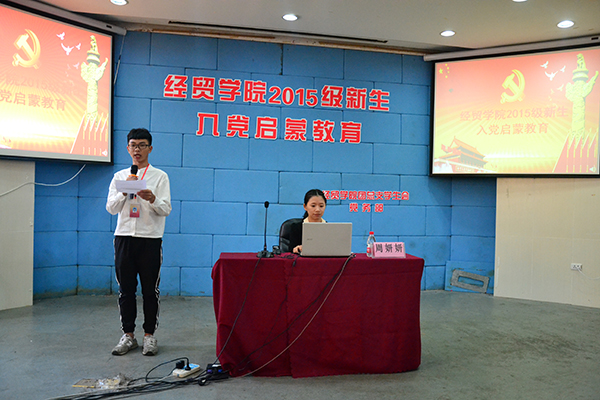 为了帮助大一新生树立远大的理想信念,明确发展目标,激发政治热情和专业学习热情,启发和引导学生积极向党组织靠拢,提高学生对入党的认识,明确入党必要程序,做到早启发、早选苗、早培养、早发展。10月24日,经贸学院团总支学生会党务部在一号教学楼阶梯教室组织开展经贸学院2015级新生入党启蒙教育。