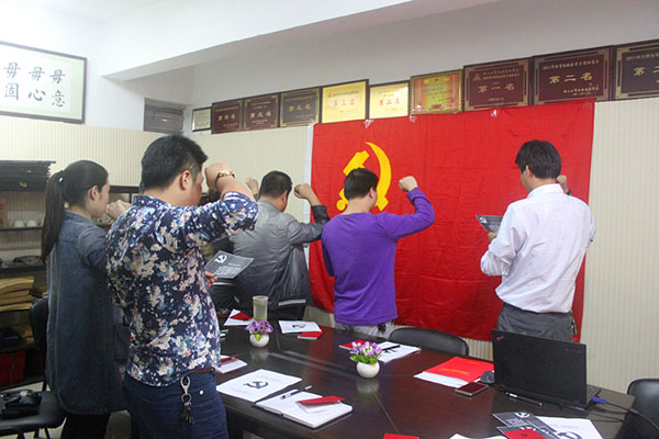 最后,成教学院全体党员面对党旗重温了入党誓词,表示将以党章的内容作为工作中的重要依据,共同努力践行新党章。