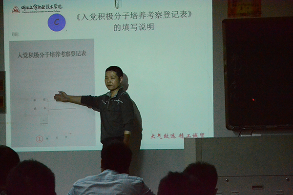 第一阶段为新党章内容的集中学习。10月12日,汽机学院党总支书记冯士活在6504教室为2014级入党积极分子做了一场关于新党章中党员发展流程的讲座。在讲座中,冯士活老师提到如何做一名优秀的入党积极分子,如何成为发展对象,如何填写党员流程中的各类表格等。冯士活老师也结合新党章,提出了对入党积极分子的希望,希望他们能认真研读新党章,经常关注时事政治,提升自身理论修养,及早成为一名合格的中共党员。