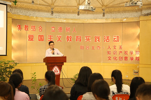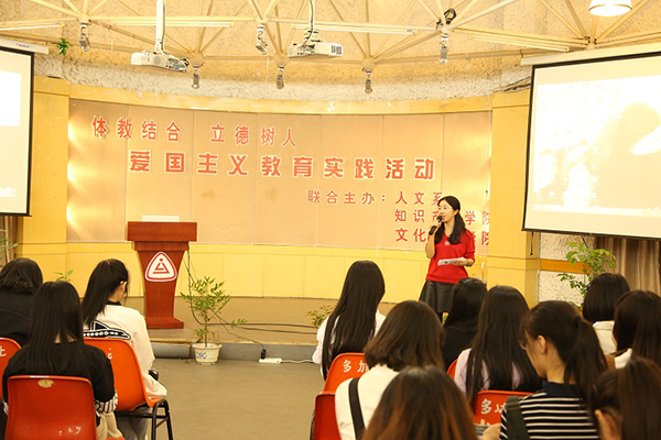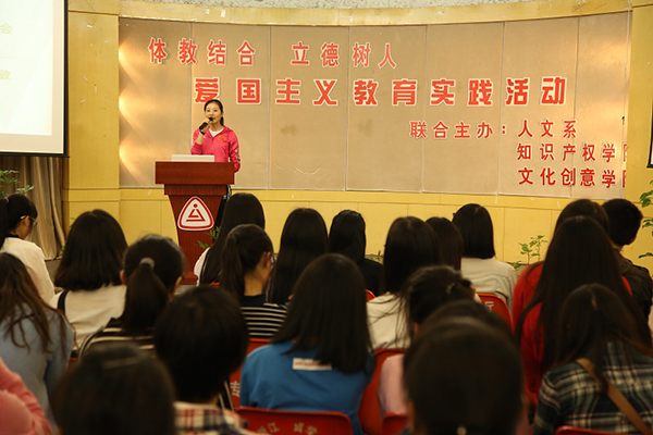 近日,人文系、文创学院、知识产权学院联合在多功能厅举办了一次爱国主义教育实践活动,此次活动以抗战70周年及地掷球体教结合文化与爱国主义为主题,也是本学期新生始业教育的一部分。活动由文创学院张杨燕老师主持,活动中向同学们通报了慰安妇事件和南京大屠杀事件在10.17日成为世界非物质文化遗产的讯息及重要意义,并指出了口头爱国与反对爱国主义的几个错误倾向。同学们一起观看了抗战经典老电影里的精彩片段。文创学院副院长吴同喜老师作了主题发言,他概要描述了祖国从艰苦奋斗到繁荣昌盛的发展历程,并道明爱国必须做到六点:第一爱要祖国,爱家,爱校,爱自己;第二要把自身前途与祖国命运紧紧关联;第三要承担建设祖国的责任;第四要努力学习,学会做人,做事;第五要思索自身的职业生涯规划;第六要坚持参加一项体育运动,锻炼体魄,锤炼爱国精神。