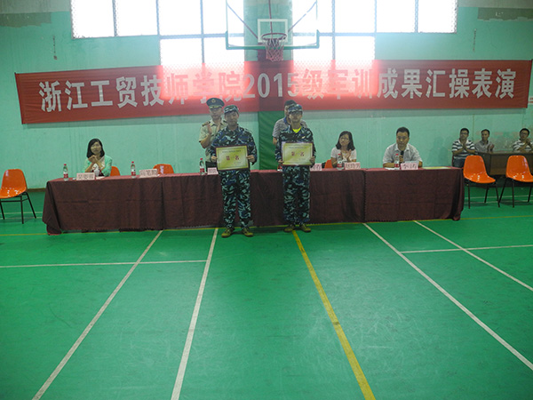 9月29日,,技师学院(温州校区)在室内篮球场举行了15级的新生军训汇报表演,海警二大队大队长苏贻锋、技师学院副院长程树存老师及各班班主任出席了此次大会。伴着饱满的精神状态,技师学院(温州校区)2015级学子们结束了为期15天的军训生活,结束了在工贸学院学习生活的第一课。学生品质、作风和意志均得到了良好的培养与磨练。
