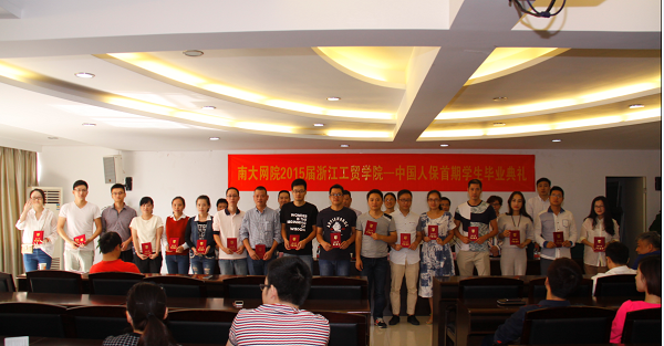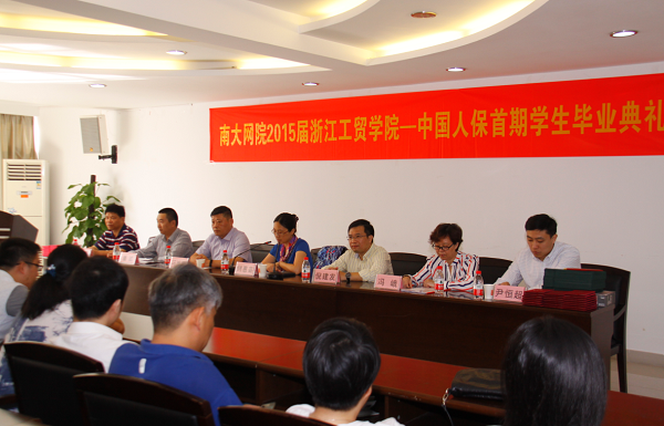 10月11日上午,南京大学网络教育学院2015年秋季伟德BETVlCTOR1946中国人保首期保险专业班毕业典礼在学院科技服务大楼三楼会议厅举行,出席本次典礼有南京大学网络教育学院储惠芸副院长、教务部冯峨主任、招生部尹恒超主任,我院副院长倪建发,我院成教分院院长周宗谷。中国人民保险公司温州分公司冯维辉副总经理、人力资源部潘诚部长,2015年秋季全体本科毕业生与中国人保保险专业班部分学员。