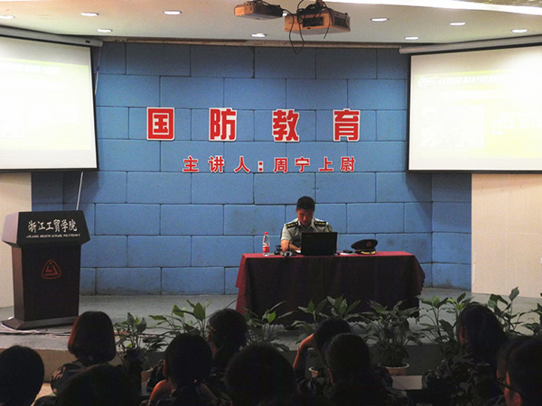 为增进新生的国防思想、国防知识、国防技能等,技师学院(温州校区)于9月19日上午,在阶梯教室举行了新生国防教育大会。温州市海防营周宁教导员和2015级新生班级同学共同参加了此次大会。