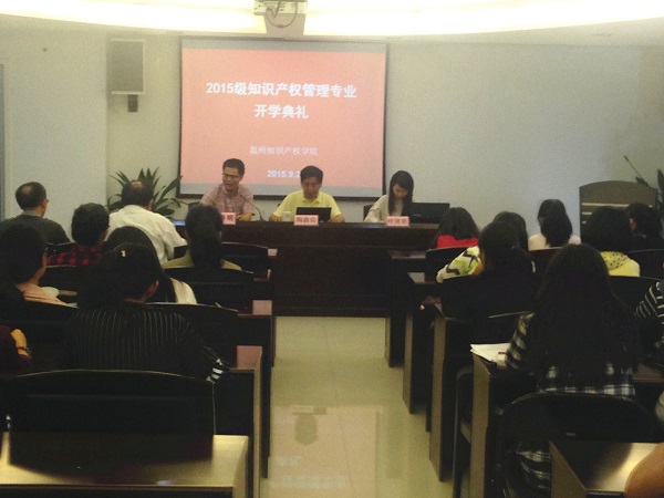 9月21日上午,知识产权学院2015级新生开学典礼暨始业教育在科技服务大楼3号楼会议室举行。知识产权学院院长陶鑫良,副院长许春明、叶珺君及学院全体教师、班主任、15级新生和老生代表参加了典礼。开学典礼由叶珺君老师主持。