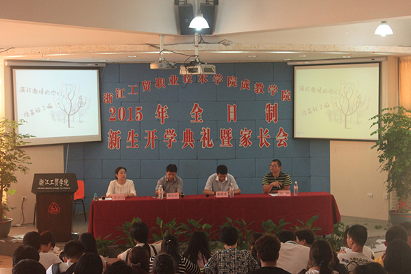 出席此次大会的有成教学院院长周宗谷,成教学院副院长、党支部书记徐登喜,成教学院教务部主任杨鹏,成教学院学生管理部副主任潘丽瑶,2015年新生以及新生家长、新生班主任。