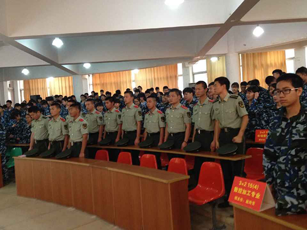 时维九月,序属初秋。新学期伊始,技师学院(温州校区)喜迎新生学子。新生入学第一课就是参加为期15天的军训。9月15日,2015级新生始业教育暨军训动员大会在阶梯教室举行。出席新生开学典礼暨始业教育的有海警二大队副大队长张星少校、技师学院(温州校区)副院长程树存老师及各班班主任。