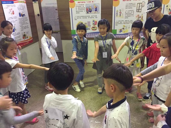 到了午休的时间,虽然天上的雨并没有因为孩子们的活跃而停下,但是这丝毫不影响队员们的心情,饭后队员们坐在地上玩起了桌面休闲游戏,其实有时回想起来才发觉我们也就是刚刚才长大的孩子而已。经过了一中午的休整,下午孩子们成群结队、面带笑容地出现在了我们的视线中,下午的课程相对要轻松一些,是音乐和体育课。