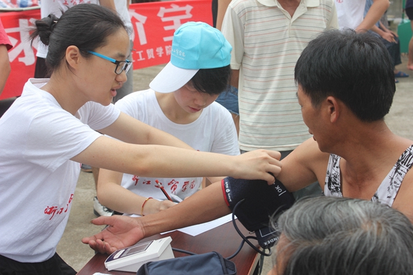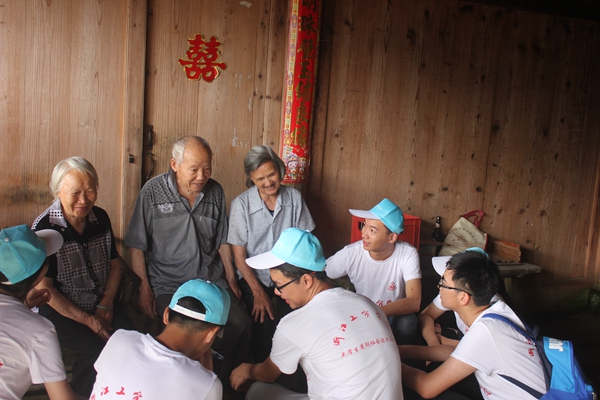实践第一天,全体队员顶着炎炎烈日,在崎岖的山路间穿行,挨家挨户地给孤寡老人送上了精心准备的慰问品。队员们簇拥在老人的跟着,互相聊天谈心,让他们感受到了温暖。值得一提的是,另外一组实践小分队步行三个多小时,去看望革命老红军,同样送去了关怀。接下来的几天里,义务量血压、帮村民干农活、医疗保险问卷调查等活动有序展开,均获得了村民们的一致好评。在实践活动的最后一晚,全体队员和西坑畲族镇文化站工作人员一起给都铺村村民献上了一台精彩的文艺晚会。都铺村文化礼堂当晚灯光璀璨,村民们齐聚一堂,欣赏着这台别开生面的文艺汇演,欢声笑语充满了整个厅堂。