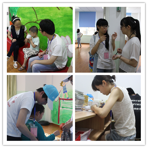 在中心开展服务工作是辛苦而快乐的,和家长以及小朋友交流的过程中,队员们学会了设身处地换位思考,细心而又耐心地帮助家长辅助孩子上课。于中心的家长和孩子而言,每一天的培训内容是重复的,因为自闭症患儿的社会感知能力极差,一个小小的动作,一首简单的歌曲都得在不断重复的基础上才能学会。这需要老师、家长、志愿者有极大的耐心、恒心,陪着孩子在一遍遍的重复中成长起来。于志愿者们而言,这是一个“炼心”的过程。