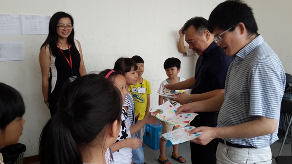 .贺院长与红马甲仰义街道暑期实践队的学生交谈,了解支教内容和实践体会