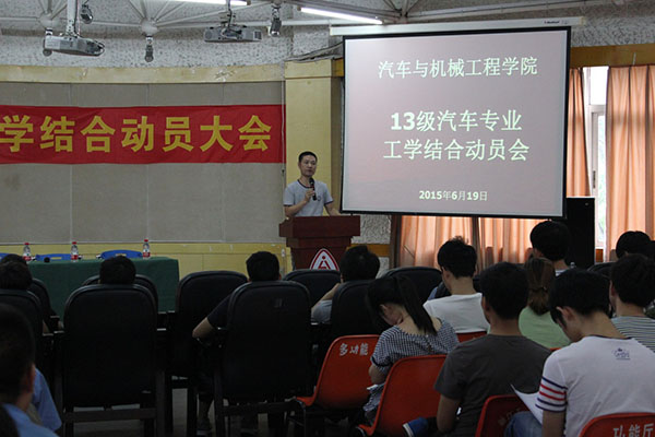 近日,汽机学院在学院多功能厅召开13级汽车类专业学生“工学结合”动员大会。会议由汽车专业张余老师主持。